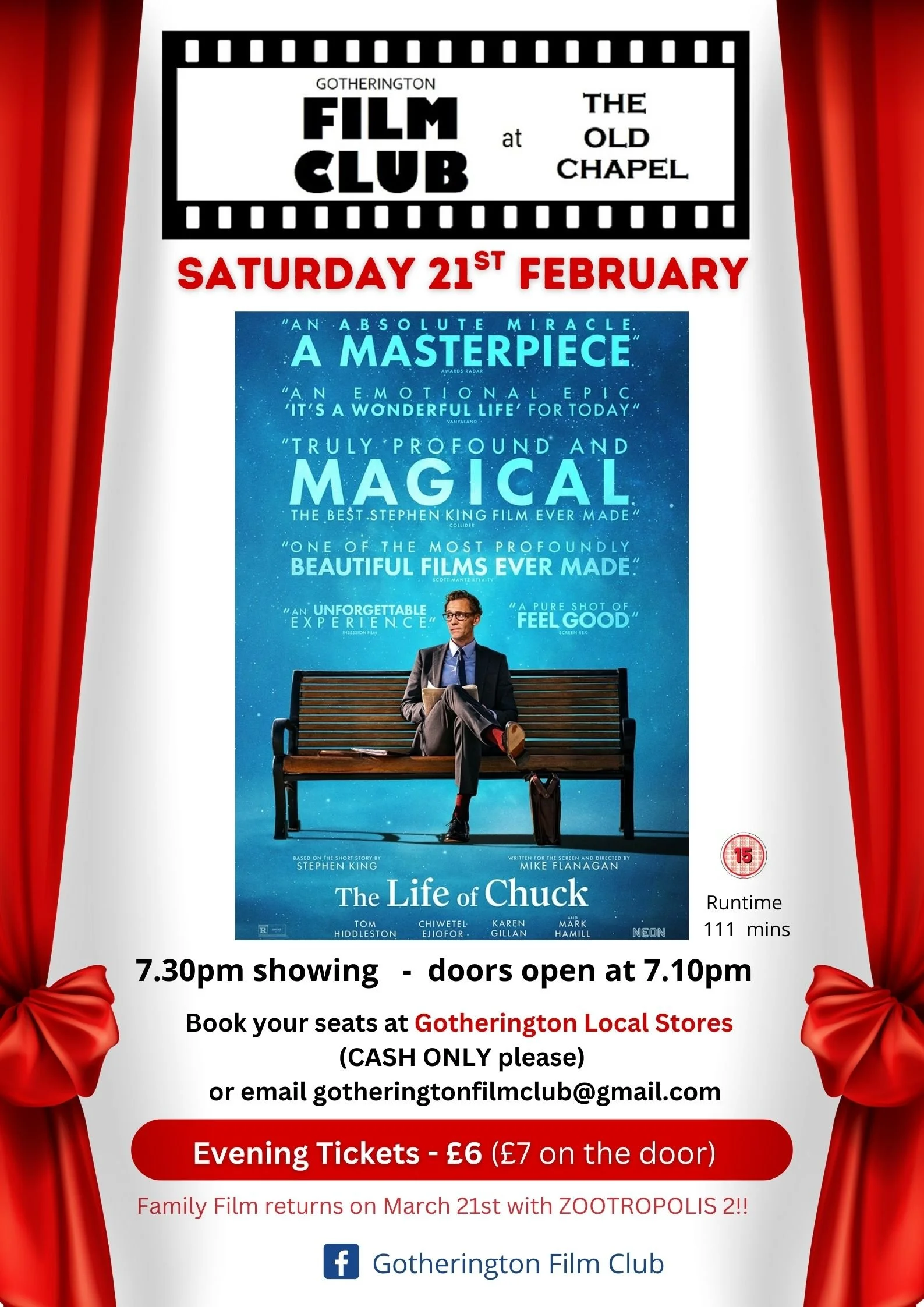You will be able to sign up for tickets at our ONE STOP village shop from Sunday 8th February (please bring cash to pay), or you can email gotheringtonfilmclub@gmail.com to reserve seats and pay online.