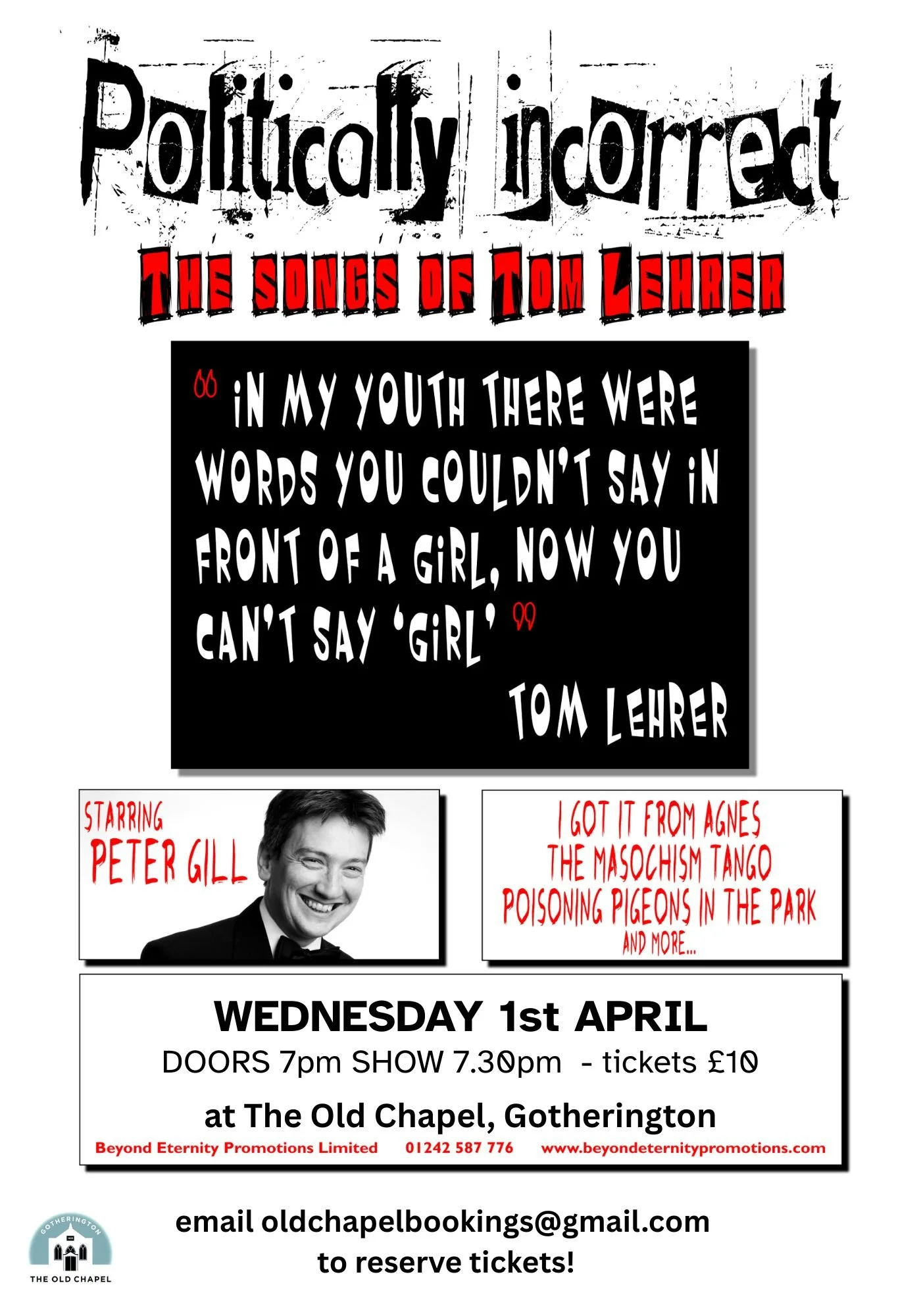 Tom Lehrer was a true songwriting genius with a biting, sometimes macabre sense of fun – this show is an absolute pleasure for me to perform.